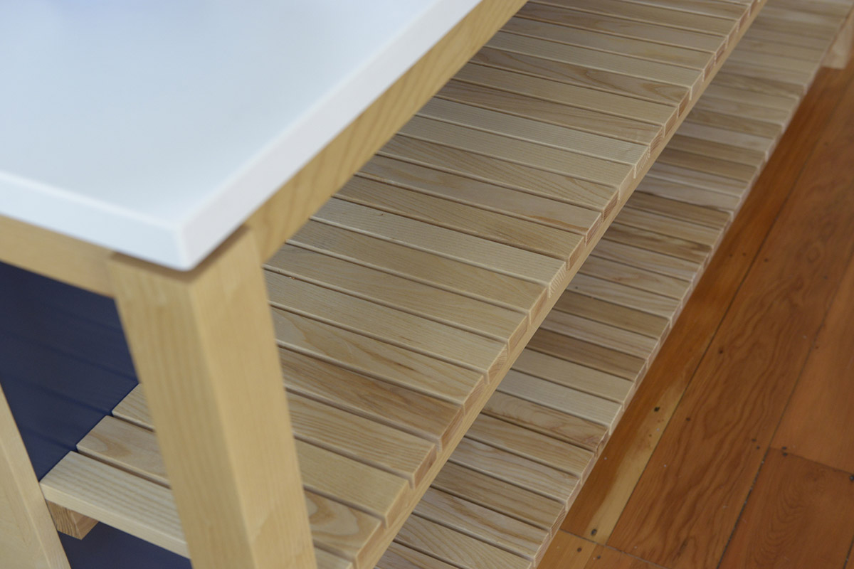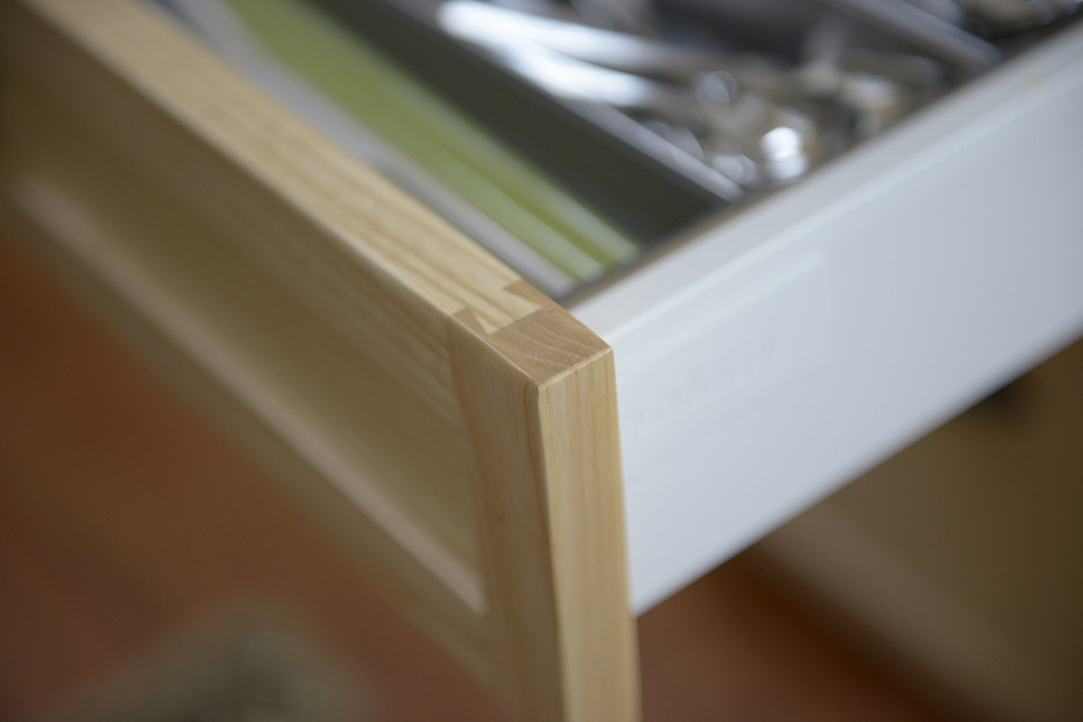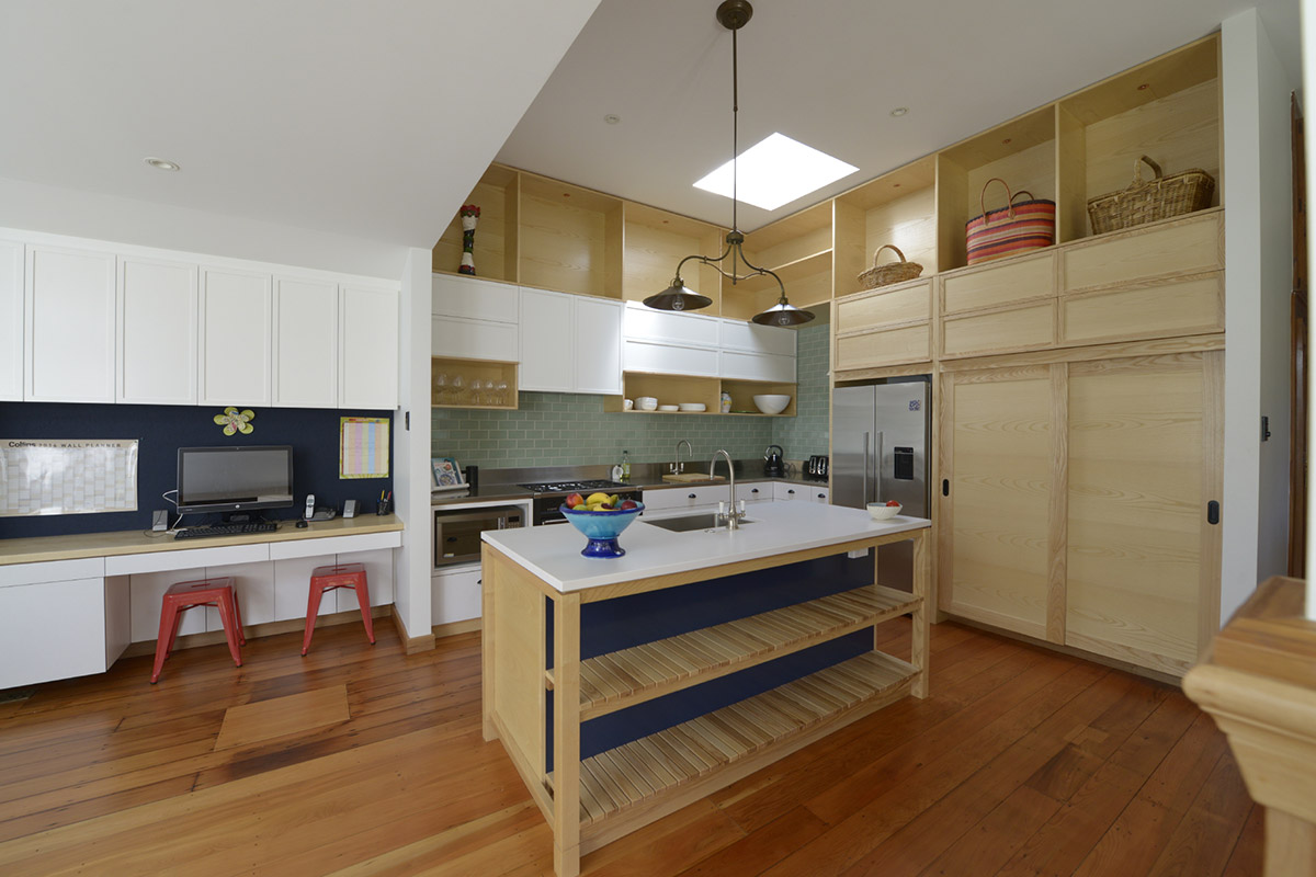Choice of materials and detailing reflect the balance between old and new. Solid American Ash and veneer panels were selected to fit with the original Matai and Rimu and introduce a lighter more contemporary feel. In high-use areas, traditional detailing, such as panelled drawer and cupboard fronts, was combined with highly durable Laminated Plywood.